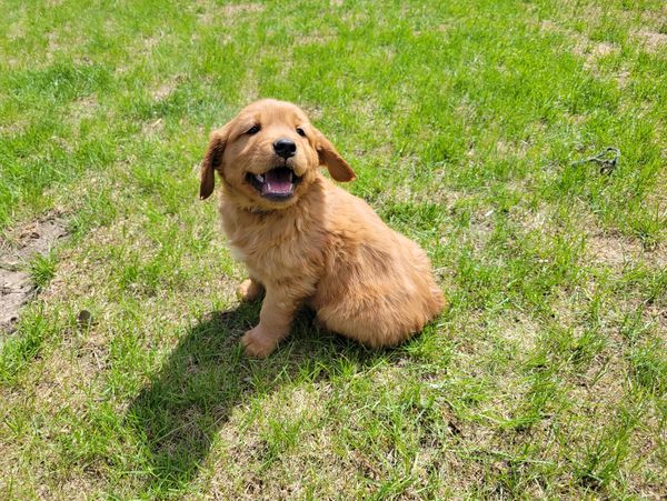 Our adult dogs are all purebred golden retrievers and are registered with the American Kennel Club (AKC). We register the puppies as a litter when they are born. As each puppy leaves the kennel for their new home we send the paperwork along for the new owner to register their new friend in their name if they would like to do so. The puppies have their dewclaws removed shortly after birth. At 6 weeks of age they go to a veterinarian for a wellness check and also receive their first vaccinations. At 8 weeks of age they have completed the deworming program. Our family spends lots of time with them; thus the socialization process is well underway by the time the puppies are old enough to leave the kennel at 8 weeks of age.